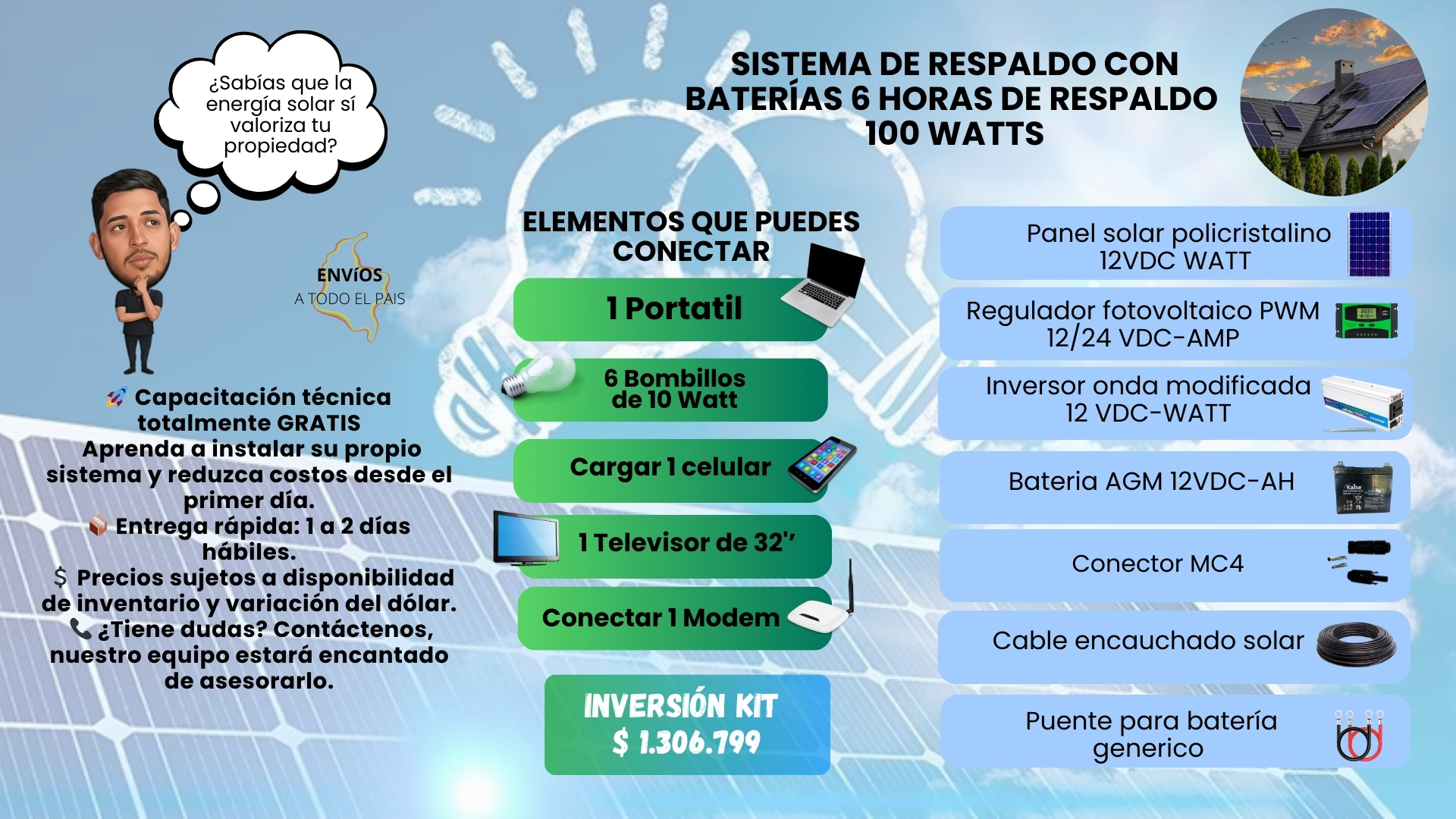 CON ESTE SISTEMA TIENES 6 HORAS DE RESPALDO, SI CONECTAS TODO AL MISMO TIEMPO.