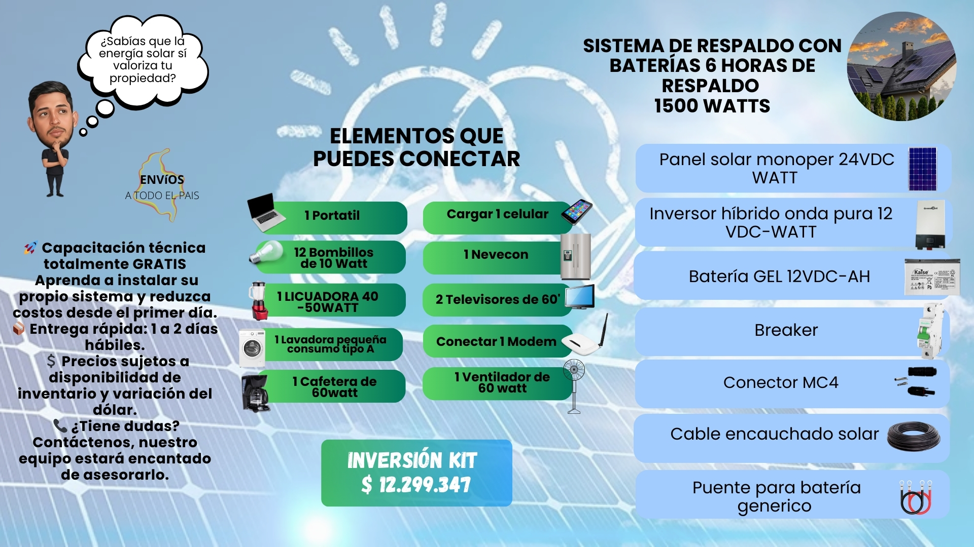 CON ESTE SISTEMA TIENES 6 HORAS DE RESPALDO, SI CONECTAS TODO AL MISMO TIEMPO.